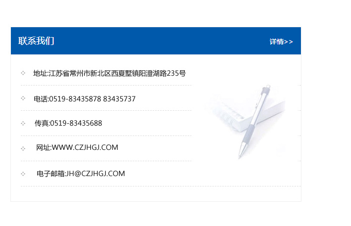地址:常州市新北區友邦商務大廈1幢16、17層  電話:0519-85101652  傳真:0519-85112595  郵編:213022  網址:www.cz-jiayue_cn.united-city.com  郵箱:xiajifengaa@163.com